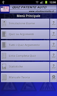 -Visualizzazione lista completa di tutti quiz: mostra tutte le domande dell'esame divise per argomenti con le relative risposte VERO/FALSO, permettendone la memorizzazione.